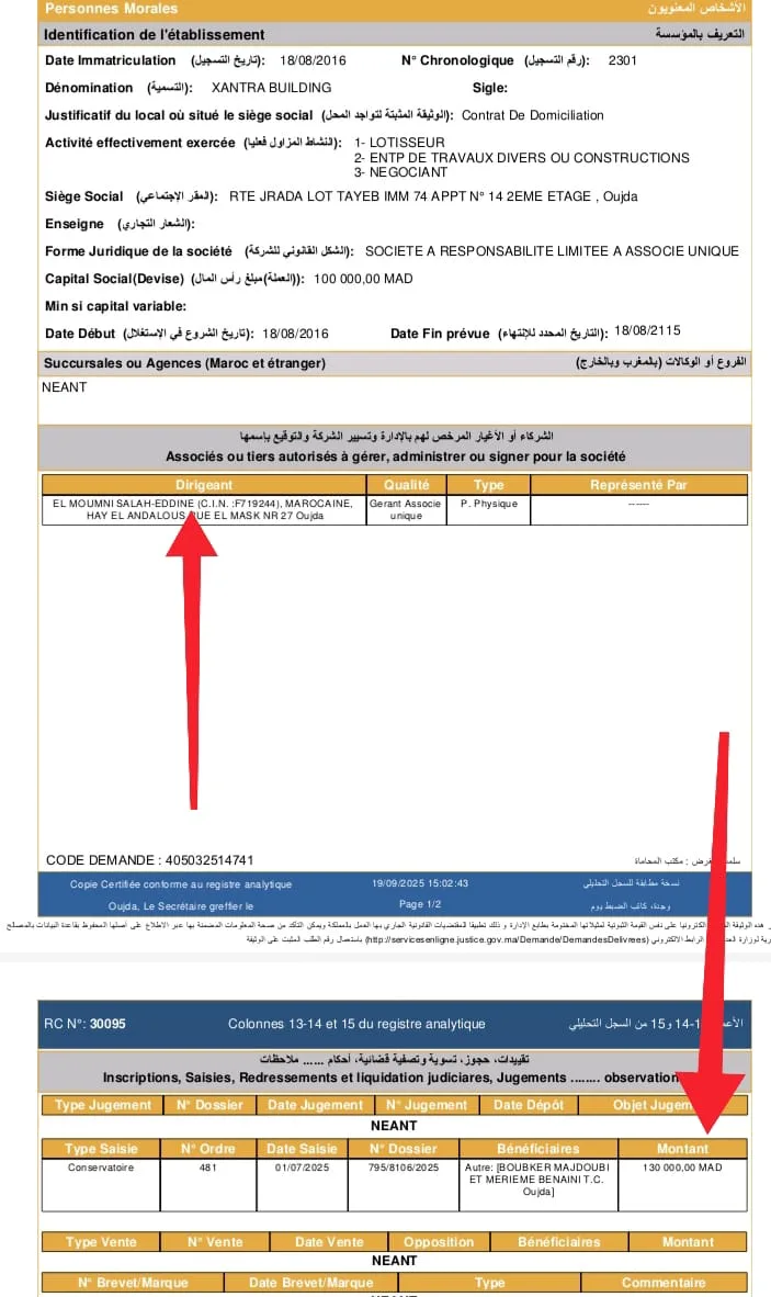 التحقيقات التي توصلت بها الجريدة تكشف أيضًا أن شركة XANTRA، التي لا يتجاوز رأسمالها 100 ألف درهم، قامت بـالتصرف في العقار المحجوز لفائدة البنك عبر بيوعات فردية، خارج الإطار القانوني للجمعية السكنية، في وقت تم فيه الزج برئيس الجمعية في السجن وتقديمه كـ“كبش فداء” في ملف خيانة الأمانة، تفاديًا لانفجار الملف بالكامل ووصوله إلى النيابة العامة المختصة في الجرائم المالية.