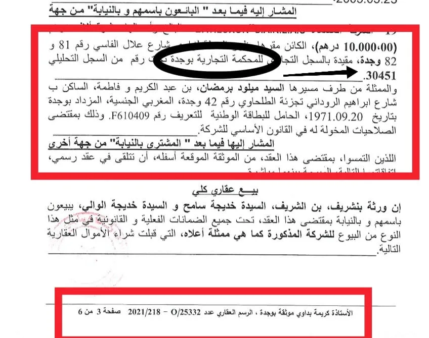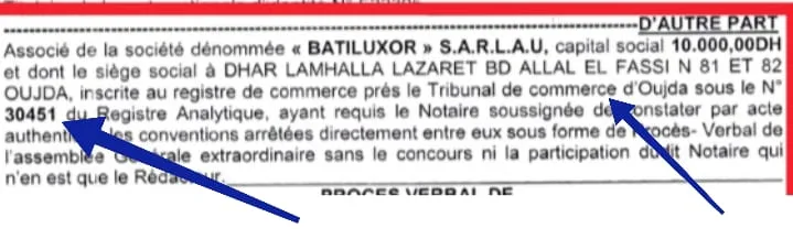 وحسب المعطيات المتوفرة، فإن اللجنة البنكية المذكورة اعتمدت ضمن ملف طلب قرض وثائق من بينها السجل التجاري لشركة Batiluxor تحت عدد 30451، المسجل في أصله لدى المحكمة التجارية بمدينة وجدة. غير أن عقد القرض المحرر بين البنك والمقاول تضمّن معطى مغايرًا، حيث أُشير فيه إلى أن السجل التجاري مسجل بالمحكمة التجارية بالدار البيضاء، في عملية تضمين متعمدة ومحكمة.