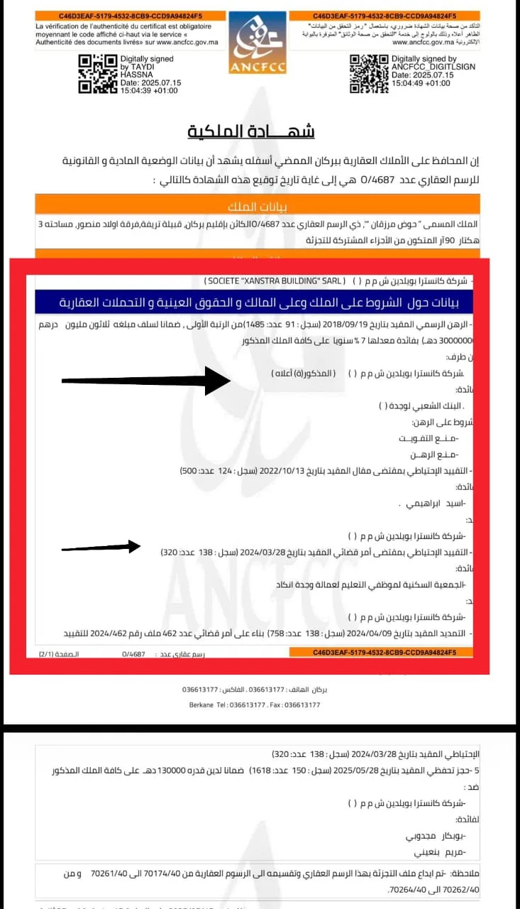وأمام خطورة الوضع، لجأت الجمعية المتضررة إلى تقييدات احتياطية لدى المحافظة العقارية، في محاولة قانونية لصون حقوق المنخرطين وحمايتها من أي تفويت أو تصرف مشبوه. وهي تقييدات يمنع معها، وطبقًا للقانون، كل تصرف في العقار من بيع أو رهن أو تفويت، إلى حين الحسم النهائي في النزاعات المعروضة على القضاء.