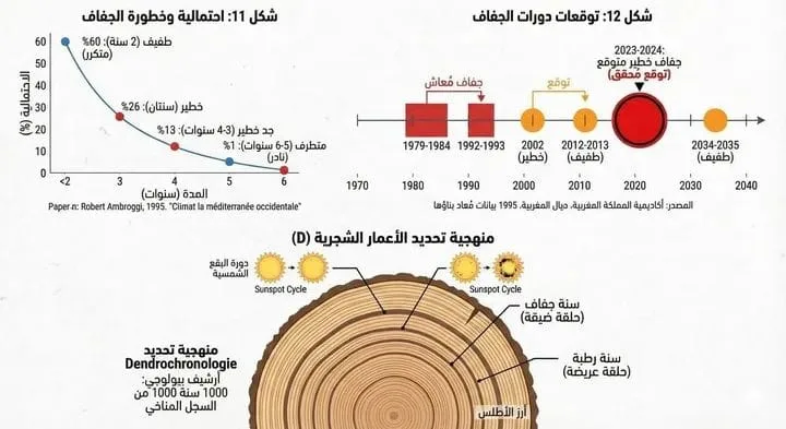 لكن الأخطر ليس في قراءة الماضي، بل في قدرة هذه الدراسة على استشراف المستقبل بدقة لافتة؛ إذ رسمت جدولًا زمنيًا توقعيًا ووضع أمبروجي تحذيرًا صارخًا عند الفترة ما بين 2023 و2024، معتبرًا إياها مرحلة “جفاف خطير متوقع”. وبعد ثلاثة عقود، جاءت الوقائع لتمنح هذه الدراسة مصداقية مضاعفة؛ فقد عاش المغرب بالفعل واحدة من أقسى موجات الإجهاد المائي في تاريخه الحديث في نفس الحدود الزمنية تقريبًا.
