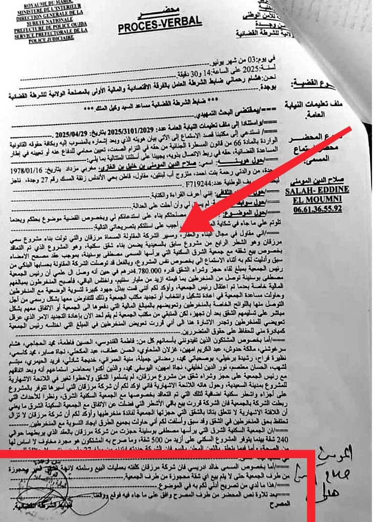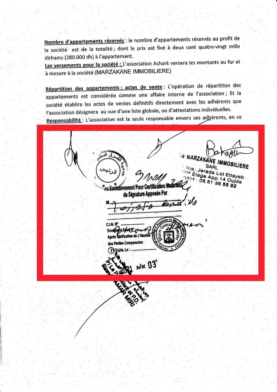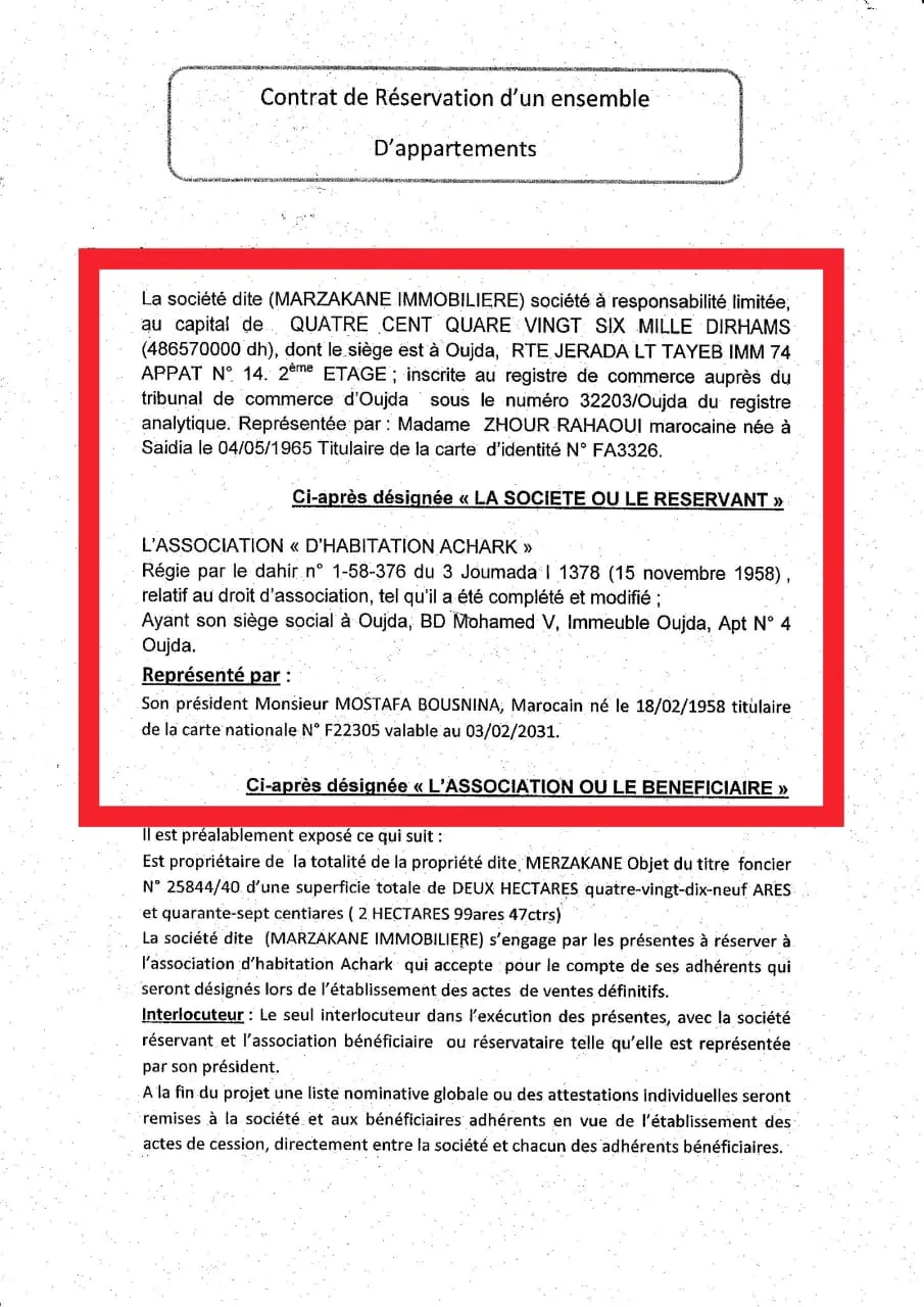 وفي إطار التحقيقات المستمرة التي تقوم بها جريدة “كواليس الريف” ، واستنادًا إلى معطيات دقيقة وموثقة، تبرز إلى السطح عملية نصب جديدة تُضاف إلى سجل ثقيل من الجرائم التي تلاحق هذا المقاول، وذلك من خلال معاملة عقارية جمعت جمعية رجال التعليم بالشرق مع شركة ظهرت من جديد تحمل اسم STE MARZAKAN.
