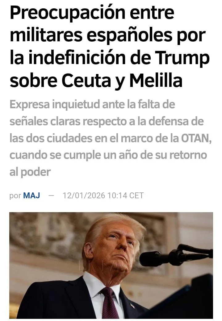 تكشف التقارير الصادرة عن وسائل إعلام إسبانية عن حالة متزايدة من القلق داخل الأوساط العسكرية وابسياسية في إسبانيا، على خلفية الغموض الذي يلف موقف الولايات المتحدة الأمريكية، في عهد الرئيس دونالد ترامب، من وضع مدينتي سبتة ومليلية المحتلتين، وعدم تقديم أي ضمانات صريحة بشأن إدراجهما ضمن منظومة الدفاع الجماعي لحلف شمال الأطلسي.