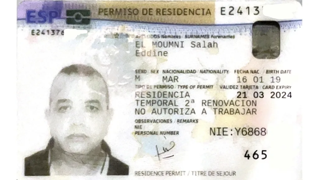 — نسخة من بطاقة إقامة البارون في إسبانيا :