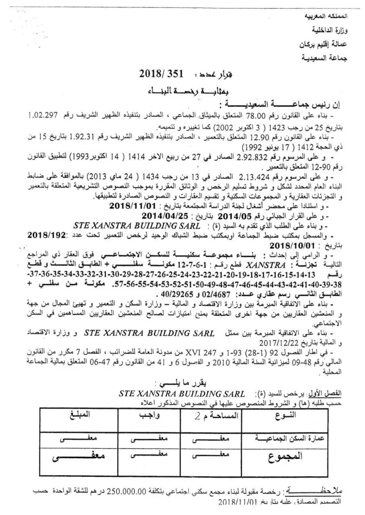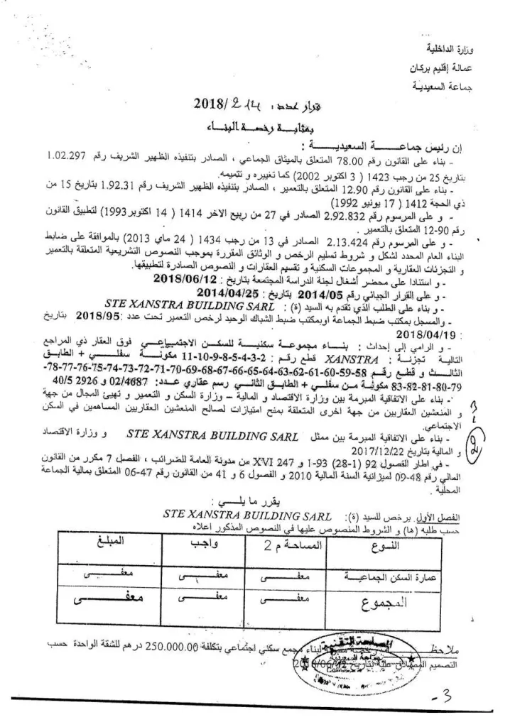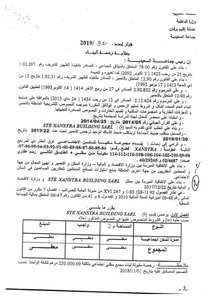 في إطار التحقيق الاستقصائي الذي تباشره جريدة “كواليس الريف” لكشف خيوط “الجريمة المنظمة لكارتيلات العقار” بوجدة والجهة ، برزت معطيات جديدة وخطيرة مدعومة بوثائق إدارية صادرة عن جهات جماعية، تتعلق بمنح رخص بناء مشروع سكني بمدينة السعيدية لفائدة شركة Xantra تحت أرقام: 214/2018 – 351/2018 – 92/2019.