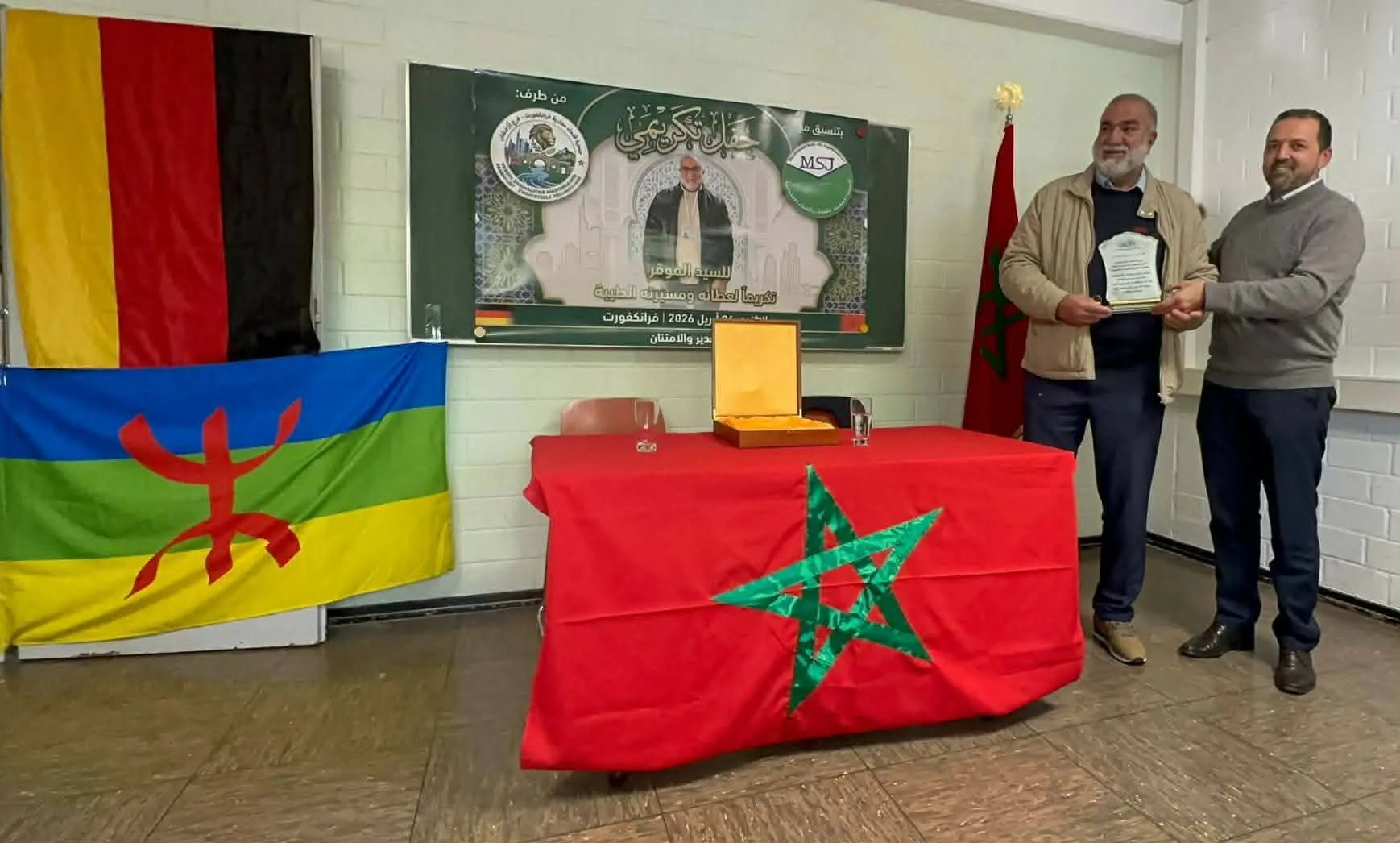 وجاء هذا التكريم بمبادرة من جمعية قدماء مغاربة فرانكفورت – فرع أزغنغان، بتنسيق مع الجمعية الإسلامية للشباب والخدمات الاجتماعية، وبمشاركة المجلس المغربي الألماني – فرع هيسن، حيث عرف الحفل حضور عدد من أفراد وفعاليات الجالية المغربية المقيمة بألمانيا.